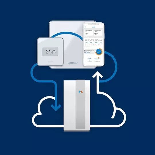 Smatrix Pulse -lämpöpumppuintegraatio lisäominaisuus mahdollistaa Uponor Smatrix Pulse -säätöjärjestelmän ja lämpöpumpun pilvipalveluiden välisen vuorovaikutuksen. Lopputuloksena on dynaaminen lämpökäyrä, joka säätää järjestelmän menoveden lämpötilan aina optimaaliseksi tarjoten entistä enemmän asuinmukavuutta ja energiatehokkuutta.